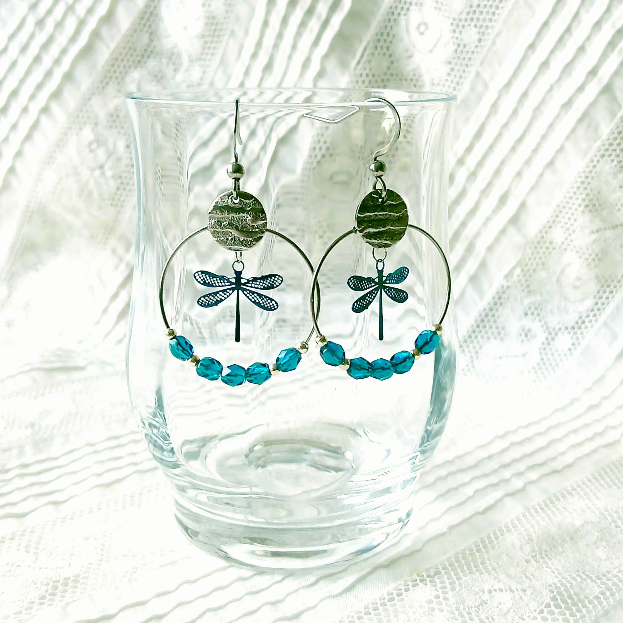 Vous trouverez en boutique une autre paire avec une libellule et des perles bleu marine : https://lescreasdioyan.fr/1842770-Creoles-avec-estampe-libellule-bleu-marine-et-perles-de-verre
