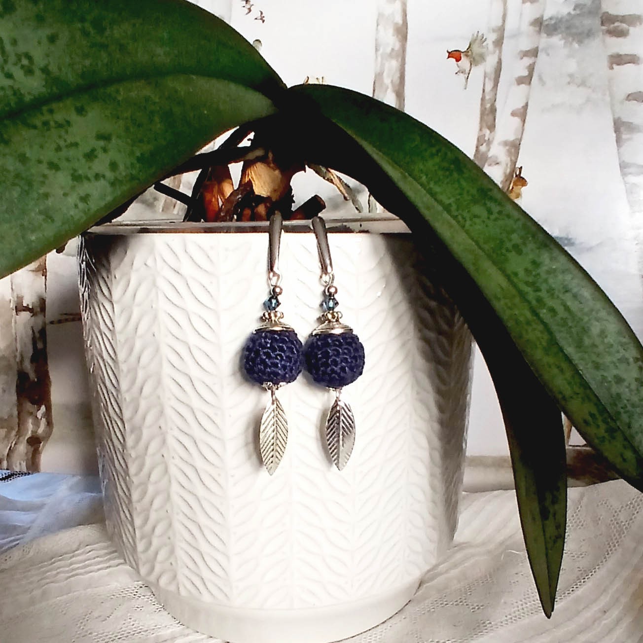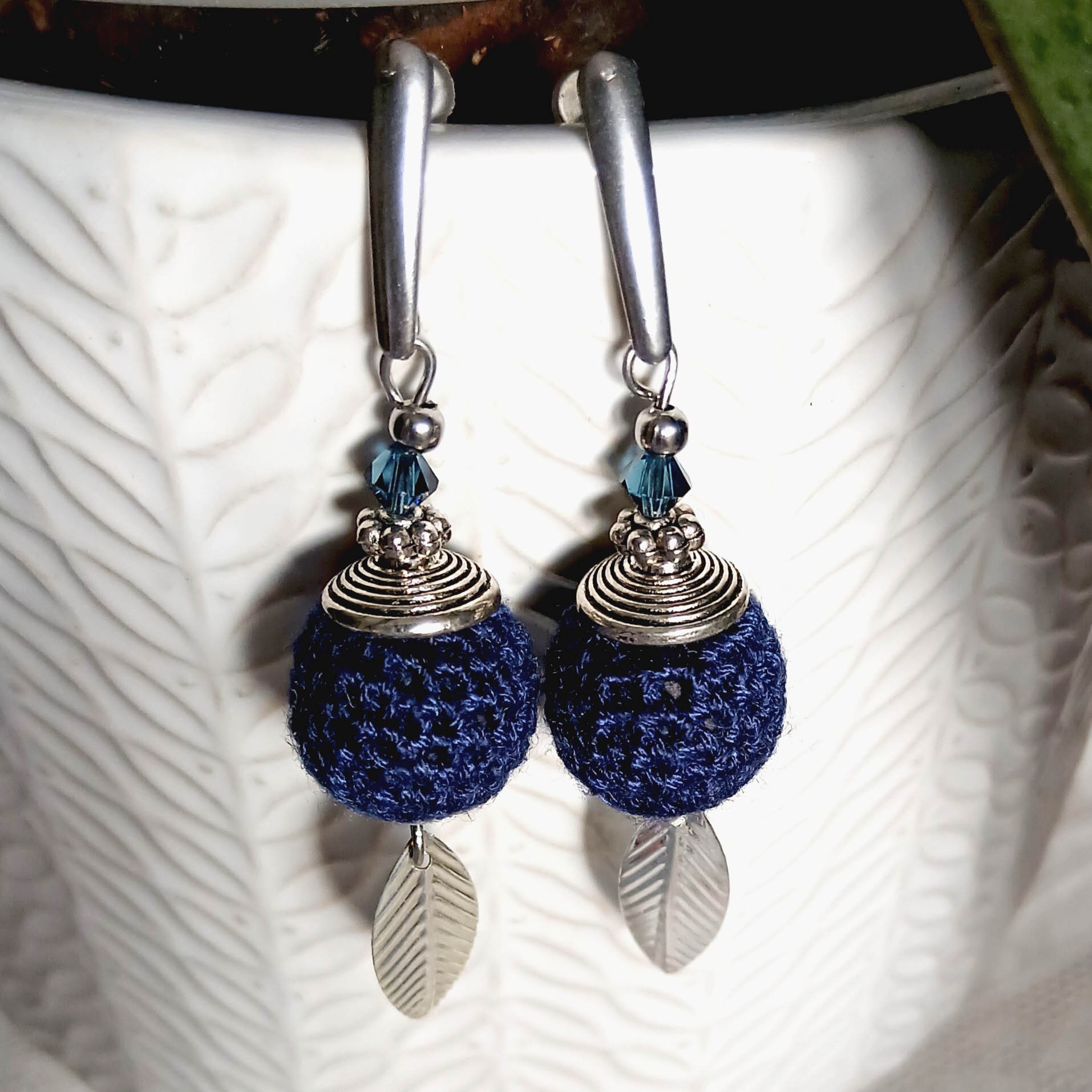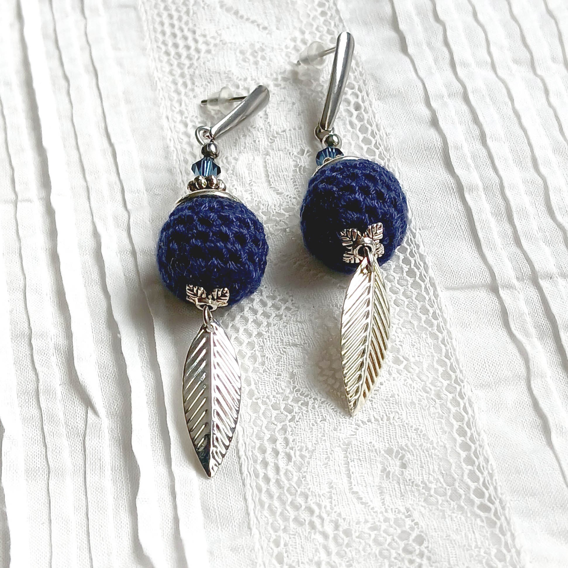- une perle en coton bleu marine crochetée par mes soins de 13-14 mn de diamètre.