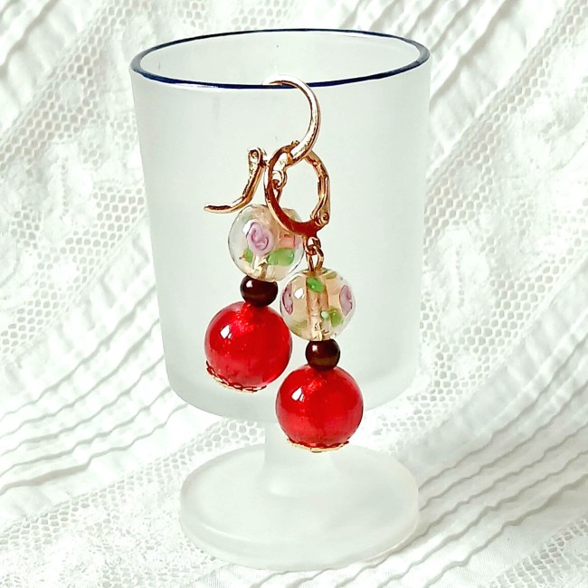 Boucles d'oreille fantaisie avec perle en papier et verre tchèque